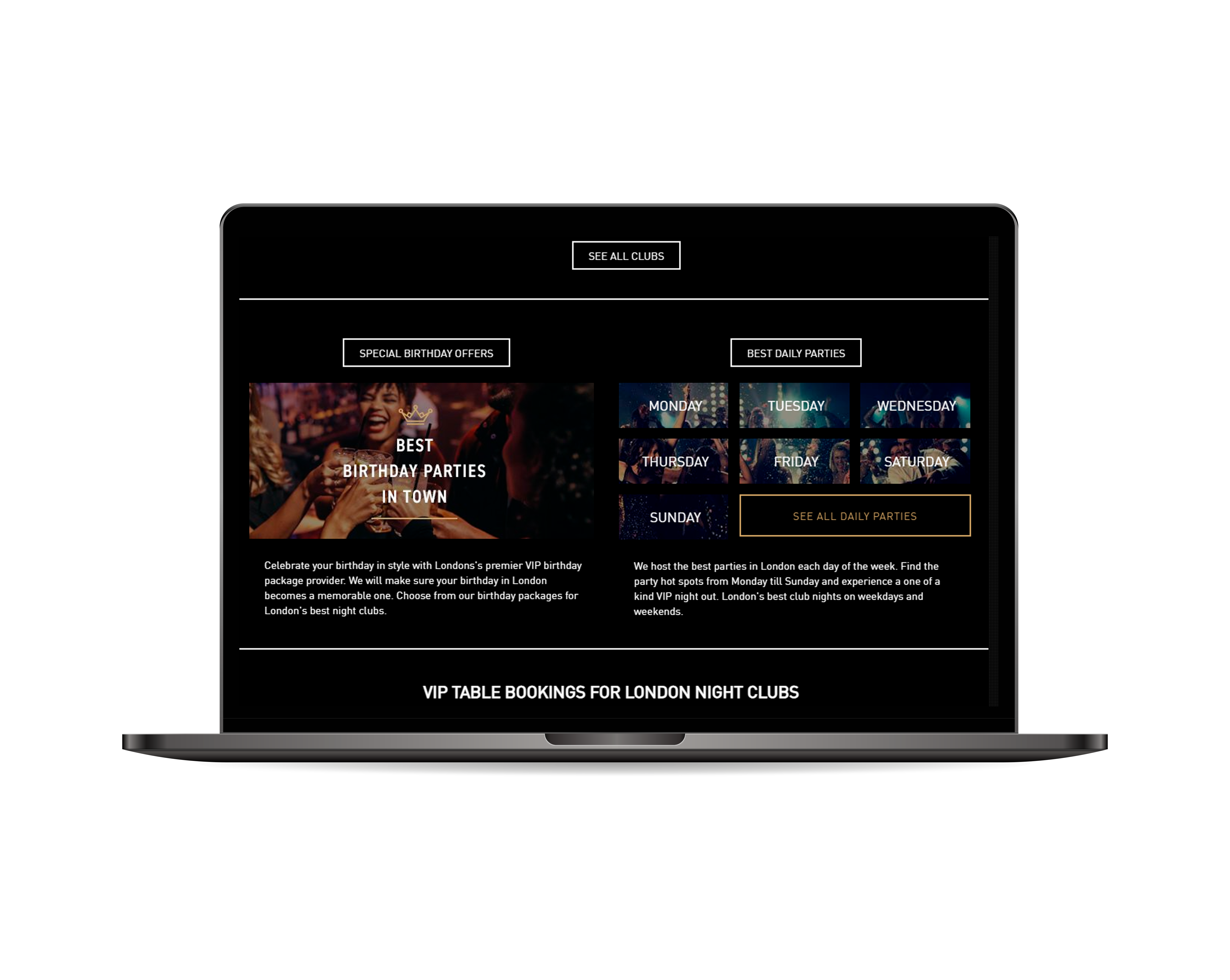 Client is UK based and runs VIP club bookings and planning for events through the website. Client runs many portals and is popular in the European leisure market. By helping you get access to the best night clubs in the world, Club Bookers is your pit-stop destination when it comes to clubbing in the world’s best VIP night clubs.